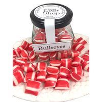Peppermint Bullseyes a popular classic old fashioned boiled lolly confectionery flavour that is one of the most popular. Presented in a nice 130g gift jar for gourmet gift baskets