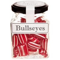 Sold in single units but best to buy a doxen. Bulls Eyes are peppermint flavoured boiled sugar lollies. Our confectioners hand make unique and beautiful hand-crafted old fashioned rock candy, (boiled lollies), bursting with flavour and vibrancy so you won't be disappointed. The Lolly Shop brands's stylish jars make a perfect gift or a delicate little treasure to keep on your desk so that everyone will be nice to you. They are full of sugar so they are not really good for your health, but in moderation they are great for smiles and wonderfull for the soul, and may just cause little people to obey you. Perfect confectionery for gourmet gift baskets.