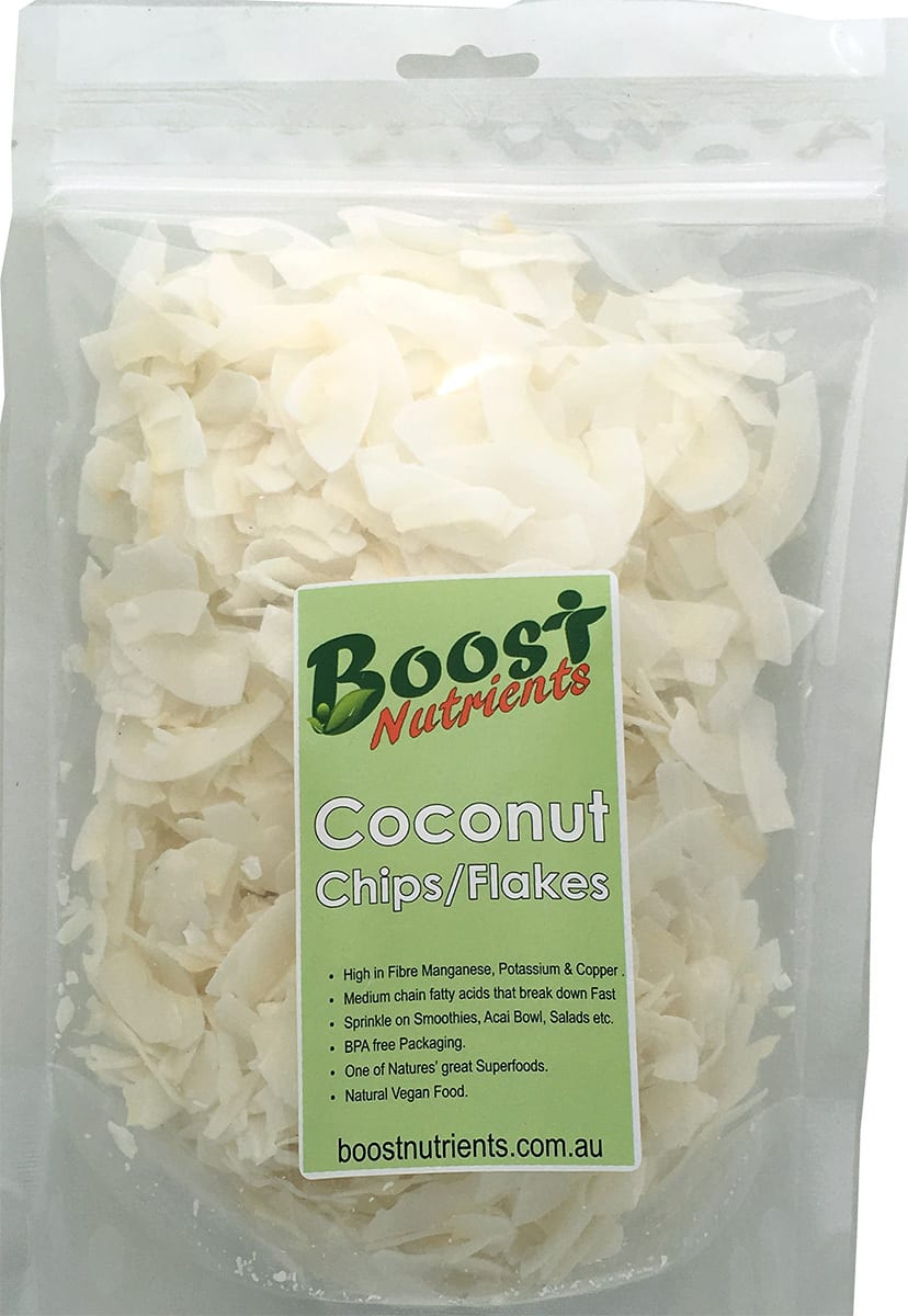 Make Easy Healthy Smoothie Shakes with Coconut Chips Organic from Boost Nutrients. Great for smoothie bowl ingredients also for Acai bowl or granola bowl toppings.