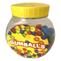 Gum Balls. A large 700g bulk jar of mult flavoured gob stoppers, for your next kid's party. These rainbow coloured beauties will make your lolly buffet stand out and be remembered. Our lollies will arrive overnight to enhance your special funtion without breaking the bank if you order by 10 am. Refill bulk bag available. Packed 6 jars  per carton Contains approximately over 80 gumballs per Jar