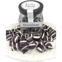 Sold in single units but best to buy a dozen. Humbugs are aniseed flavoured boiled sugar lollies. Our confectioners hand make unique and beautiful hand-crafted old fashioned rock candy, (or boiled lollies), bursting with flavour and vibrancy so you won't be disappointed. The Lolly Shop brands’ stylish jars make a perfect gift or a delicate little treasure to keep on your desk so that everyone will be nice to you. They are full of sugar so they are not really good for your health, but in moderation they are great for smiles and wonderful for the soul, and may just cause little people to love and obey you. Perfect confectionery for gourmet gift baskets.